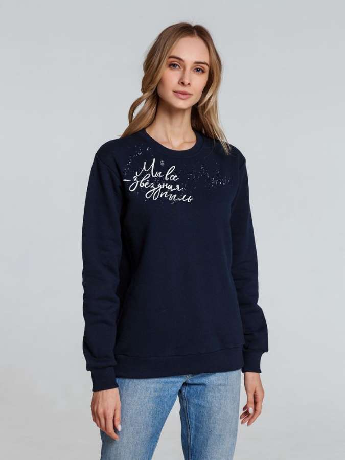 Когда проблемы кажутся нам большими, можно вспомнить, что мы и наша жизнь – всего лишь песчинки на фоне Вселенской бесконечности. Пролетаем на голубом шаре сквозь космос, а сами состоим из звездной пыли, как и все вокруг. С одной стороны — это напоминает, что все бренно и преходяще, с другой стороны — дарит чувство единства со всем окружающим – ведь звезды взорвались, чтобы мы жили. Классический кроеный свитшот унисекс. Манжеты, ворот и низ изделия отделаны резинкой. Внутренняя сторона без начеса.