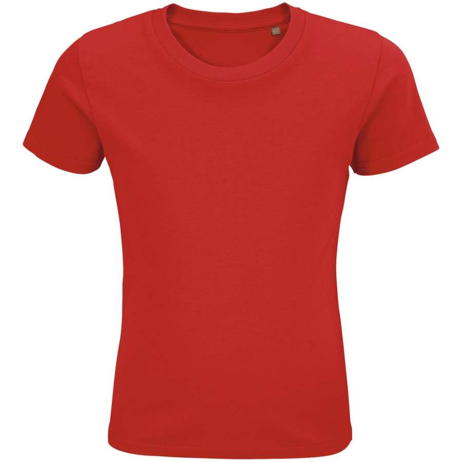 Детская кроеная облегающая футболка из органического хлопка с круглым вырезом.