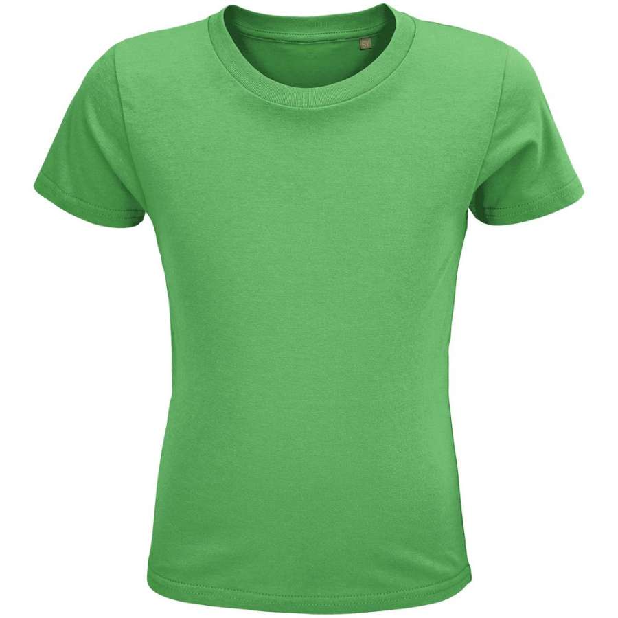Детская кроеная облегающая футболка из органического хлопка с круглым вырезом.