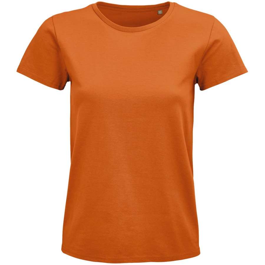 Женская бесшовная облегающая футболка из органического хлопка с круглым вырезом.