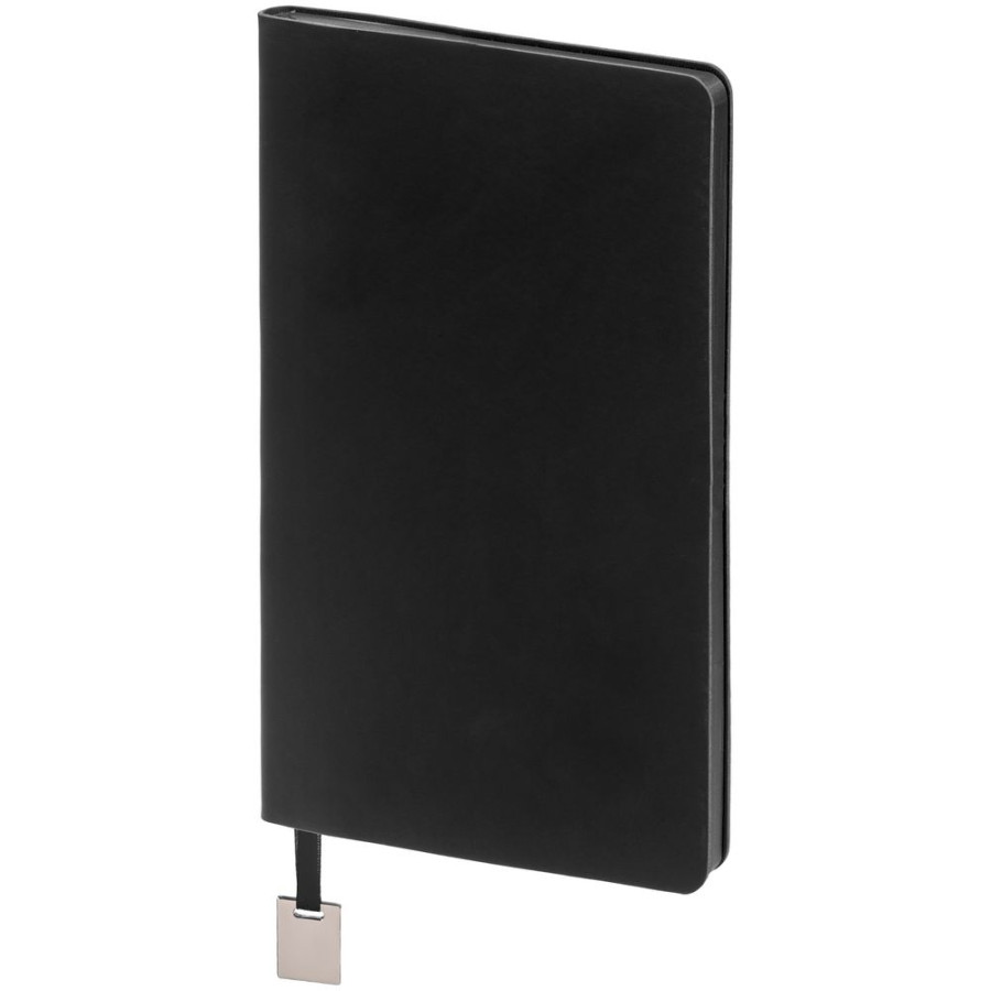 Ежедневник с гибкой обложкой, выполнен из материалов Soft Touch Pearl, черный АА, и Latte, черный (внутренняя часть обложки), дополнен ляссе в цвет обложки с металлическим шильдиком.