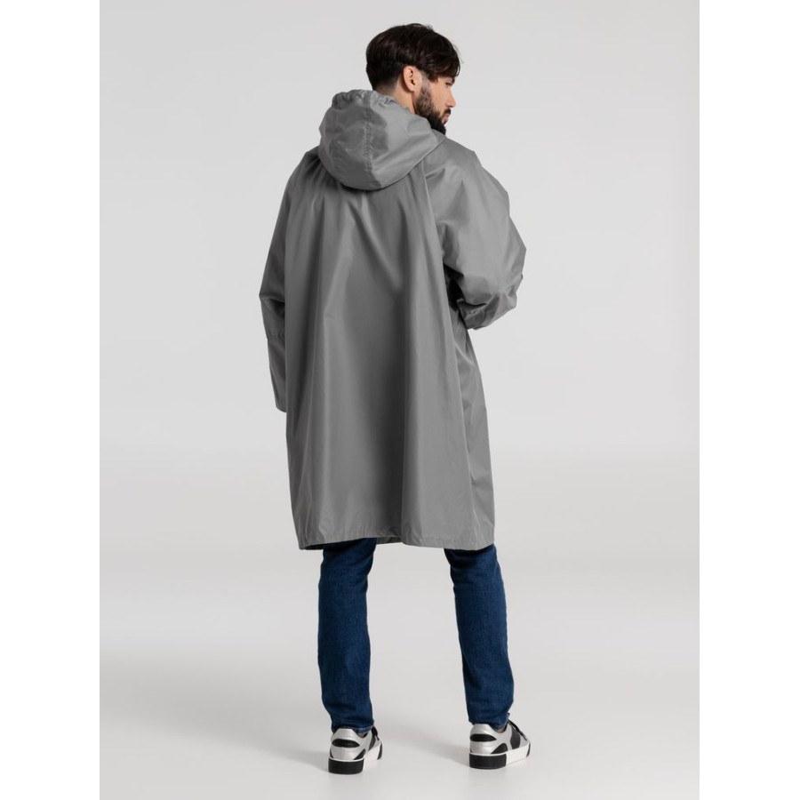 Дождевик-анорак с капюшоном и карманом на молнии спереди. Выполнен из ткани дюспо с матовой поверхностью — легкой, мягкой на ощупь, но устойчивой к повреждениям. Она не шелестит и практически не мнется. Благодаря пропитке дюспо обладает отличными водоотталкивающими и ветрозащитными свойствами.