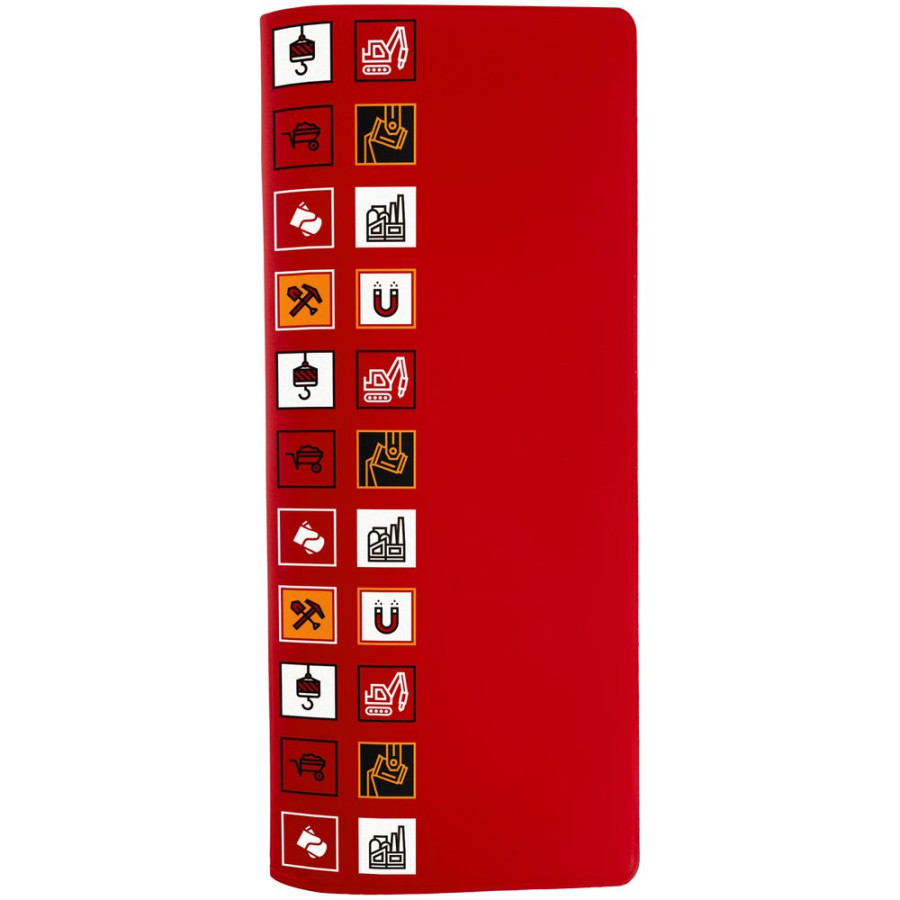 В каждой части общего рисунка изображены главные символы металлургической промышленности. Органайзер имеет 5 отделений: для билетов, паспорта, визиток или кредитных карт.