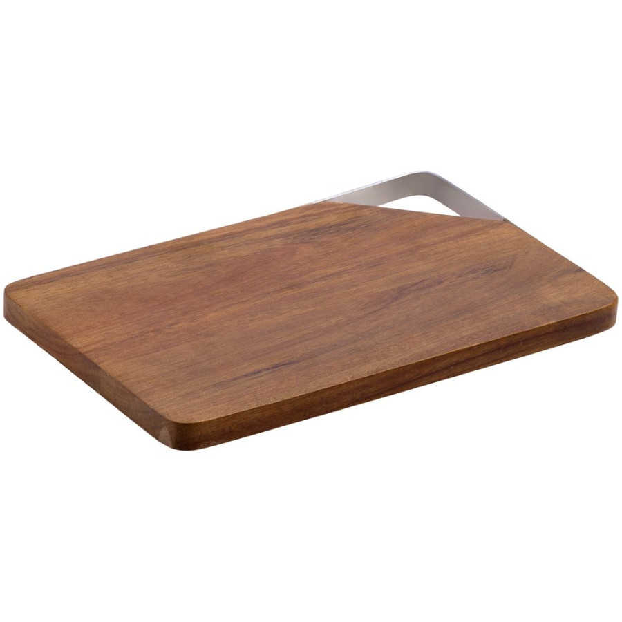 Качественная разделочная доска — необходимый предмет на любой кухне. Доска выполнена из прочного материала — древесины акации. Она обладает высокой твердостью, водоотталкивающими свойствами. Для удобства размещения на стене в верхнем углу предусмотрен подвес из металла. Доска поставляется в пакете.