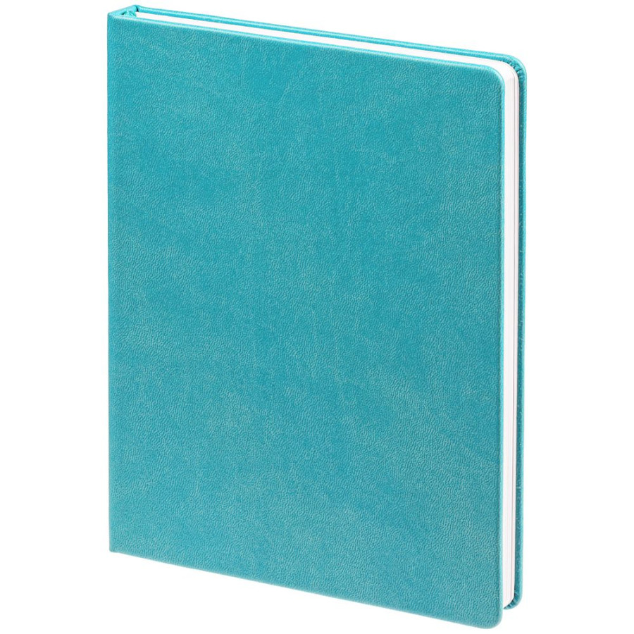 Ежедневник с твердой обложкой. Выполнен из материала Latte, бирюзовый, дополнен ляссе в цвет обложки.