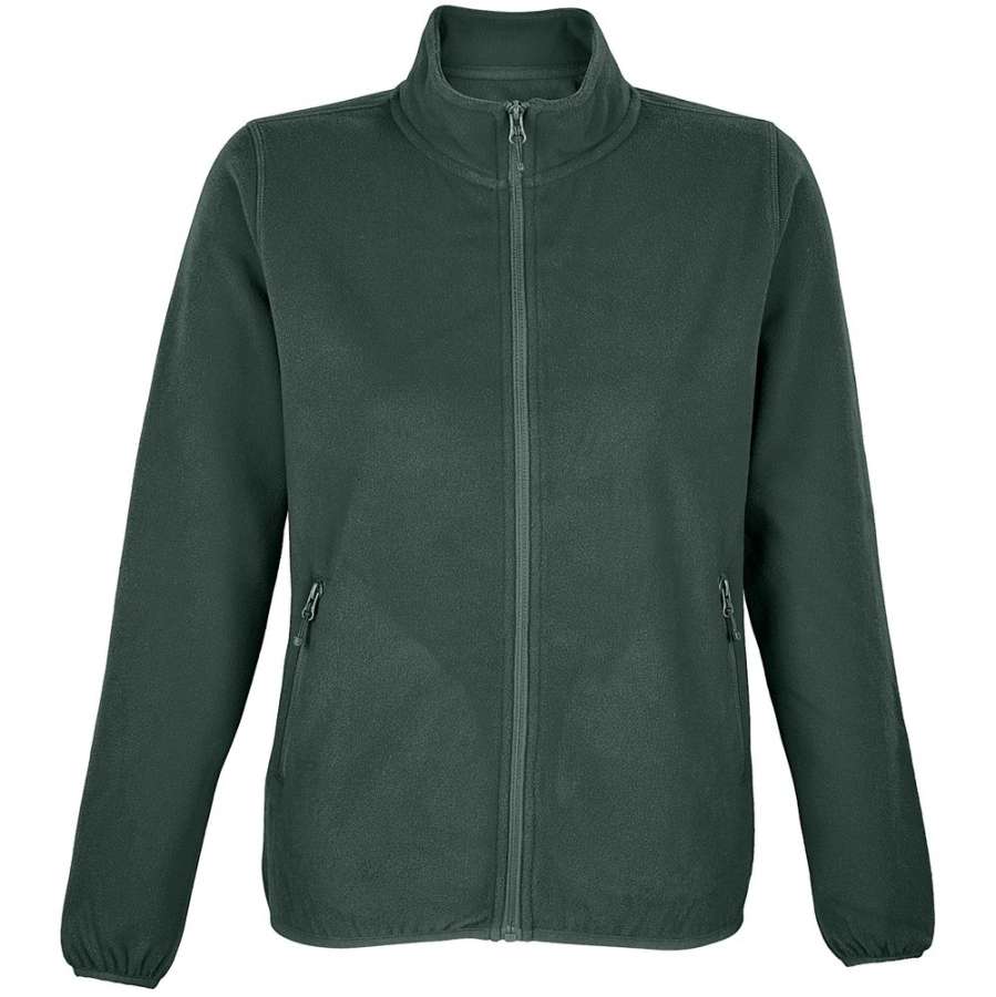 Флисовая женская куртка с воротником-стойкой. Застежка-молния в тон ткани, боковые карманы на молнии. Укрепляющая тесьма по вороту. Края рукава и низ изделия отделаны эластичной резинкой.