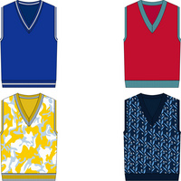 Модель: жилет жаккардовой вязки, плотный и теплый, 2–3 цвета нитей, гладкая поверхность. На бейках горловины и проймы возможна отделка в виде контрастных полос (не более 3-х цветов).