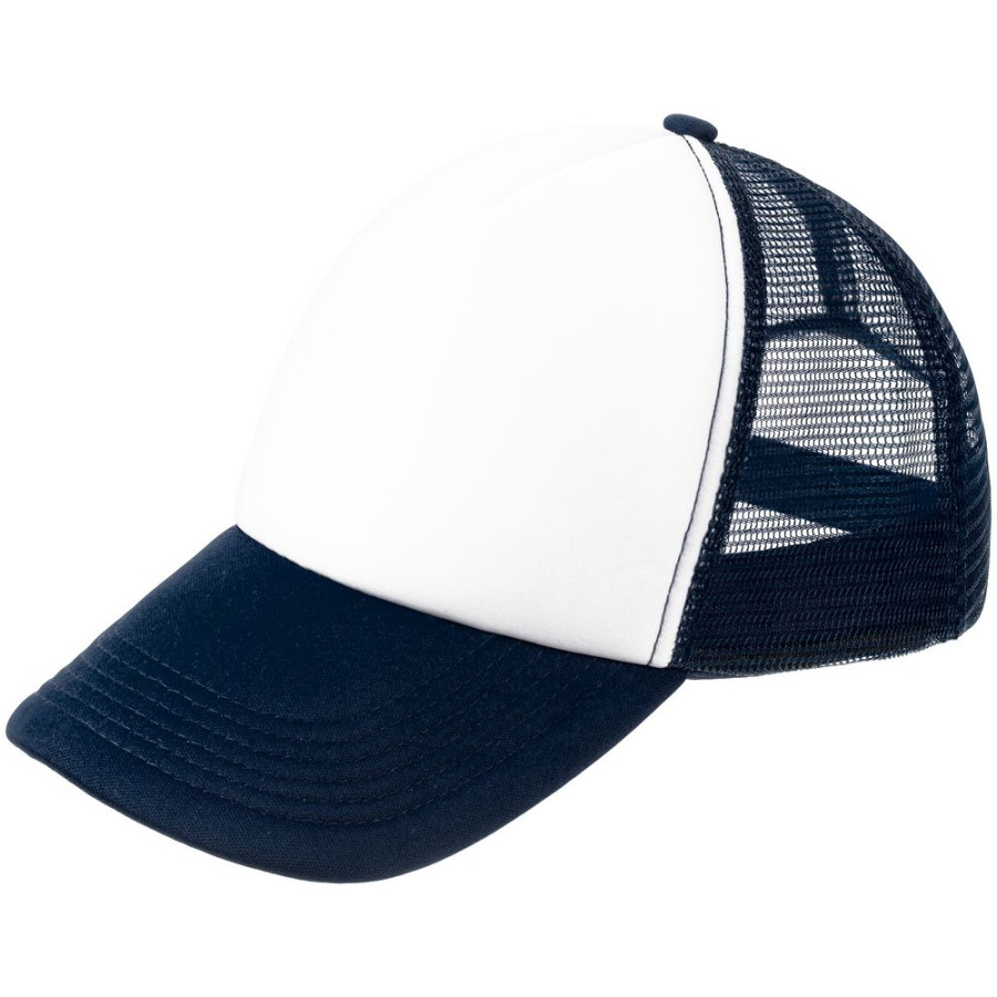 Стандартная модель с 5 клиньями без лобового шва в нестандартном исполнении. Передний клин и козырек выполнены из полиэстера с наполнителем из поролона, боковые и задние клинья — из сетки. Размер регулируется с помощью пластиковой застежки.