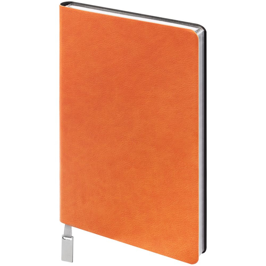 Ежедневник с гибкой обложкой, выполнен из материала Petrus, оранжевый ОО, дополнен серым ляссе с металлическим шильдиком.