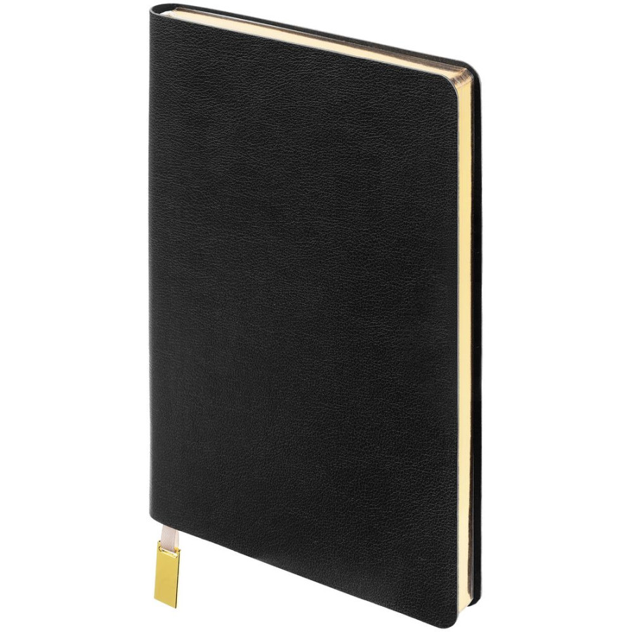 Ежедневник с гибкой обложкой, выполнен из материала Petrus, черный АА, дополнен серым ляссе с металлическим золотистым шильдиком.