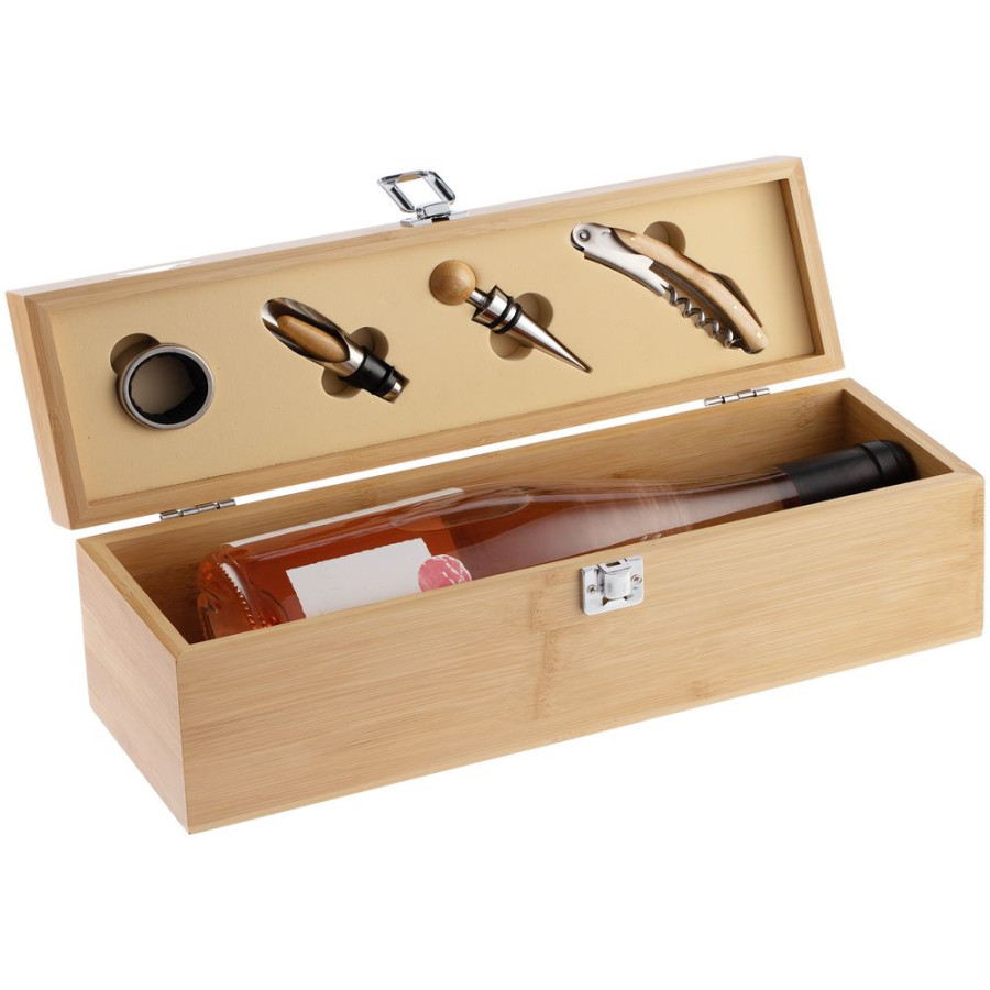 Набор для вина Vinotech с футляром для бутылки — оригинальный и функциональный подарок. Штопор поможет бережно и без усилий откупорить бутылку, а чтобы вино не расплескалось и не оставило пятен, пригодится кольцо-каплеуловитель, надетое на горлышко открытой бутылки: так капли не будут стекать на стол или скатерть. Аэратор поможет аромату вина раскрыться, а винная пробка сохранит свежесть и вкус напитка еще некоторое время после откупоривания бутылки. В наборе: