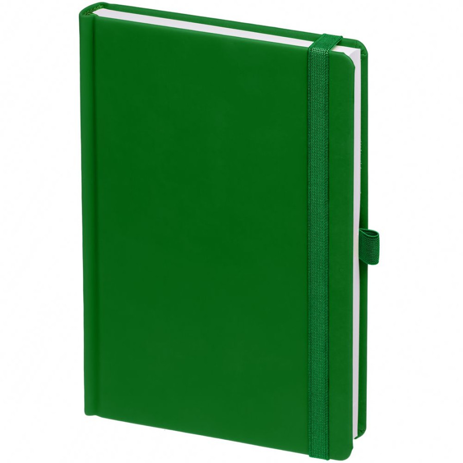 Ежедневник с твердой обложкой без поролона, выполнен из материала Soft Touch Ultra, зеленый FF, дополнен резинкой шириной 1 см, петлей-резинкой для ручки, капталом и ляссе ярко-зеленого цвета.