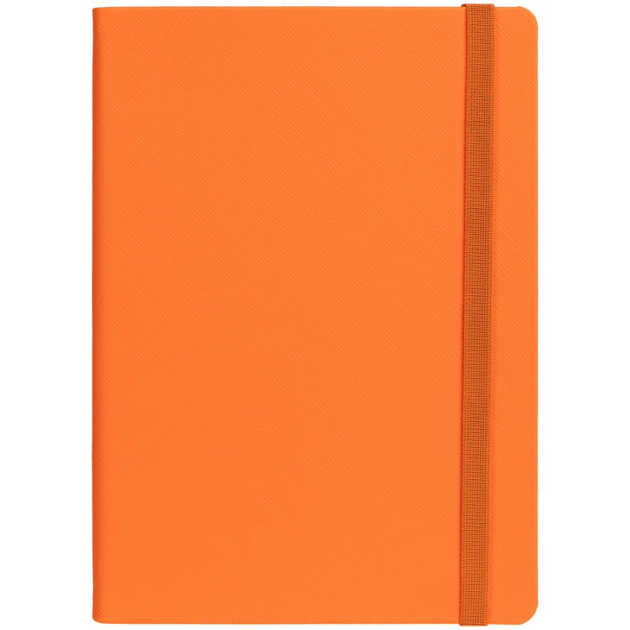 Ежедневник с твердой обложкой выполнен из материала Nice Touch, оранжевый ОО, и дополнен резинкой шириной 1 см и ляссе оранжевого цвета.