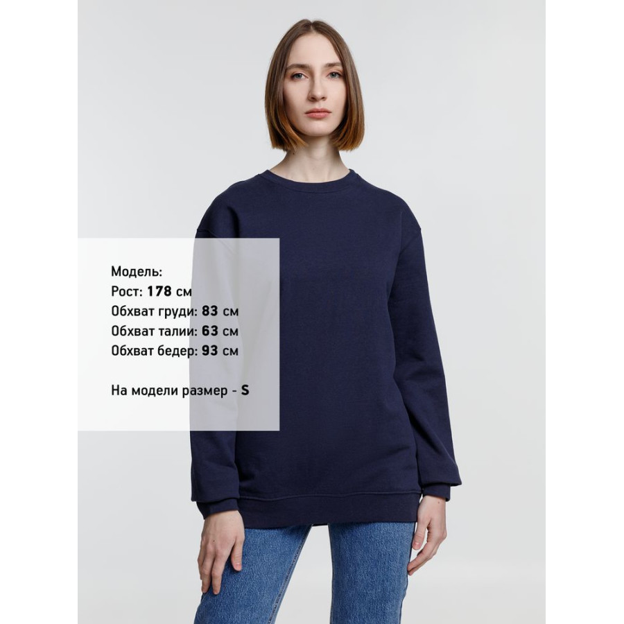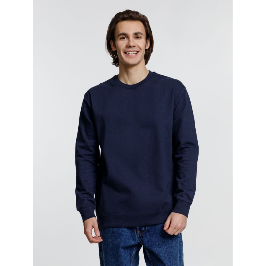 Свитшот унисекс из хлопка и переработанного полиэстера с круглым вырезом и втачным рукавом.