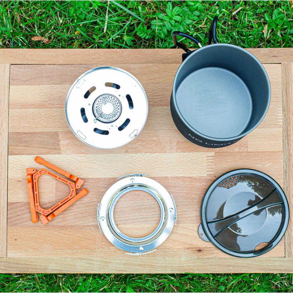 Система приготовления пищи для туризма, кемпинга и активного отдыха. Система приготовления пищи состоит из 4 элементов:
