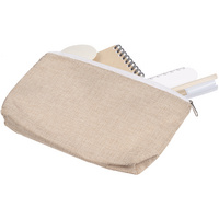 Стильный крафтовый набор с самыми необходимыми канцелярскими принадлежностями: мини-блокнотом в клетку, ластиком, удобной линейкой-закладкой и ручкой в компактном пенале-косметичке.