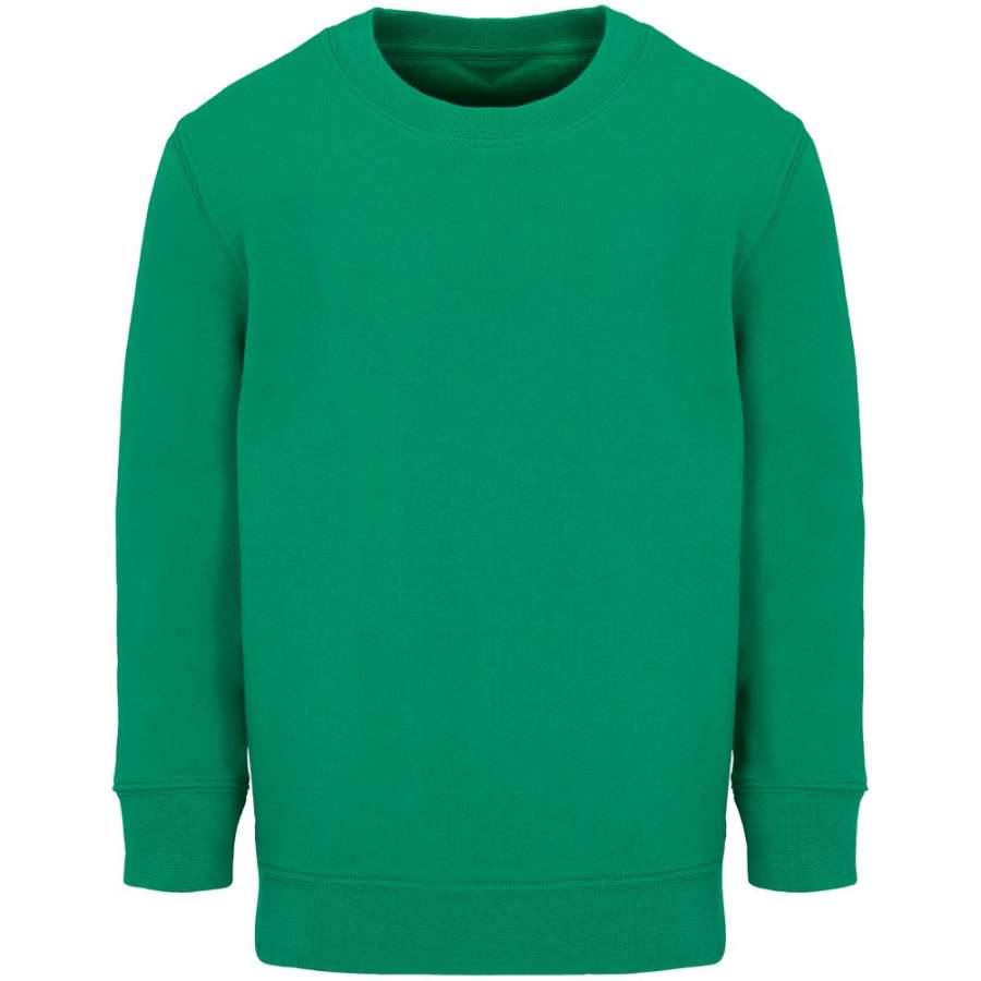 Детский свитшот из хлопка и переработанного полиэстера с круглым вырезом и втачным рукавом.