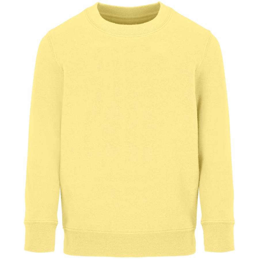Детский свитшот из хлопка и переработанного полиэстера с круглым вырезом и втачным рукавом.