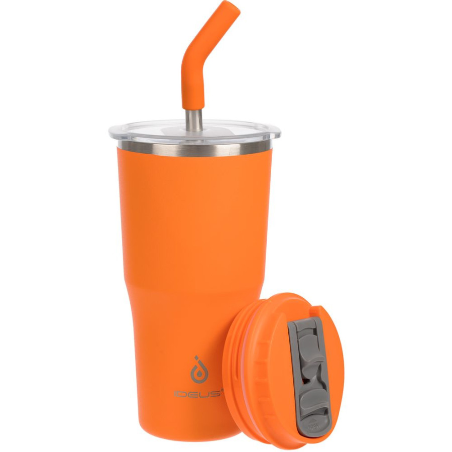 - 2 крышки в комплекте: одна на 100% герметичная с механизмом блокировки отверстия для питья, вторая — с отверстием для трубочки