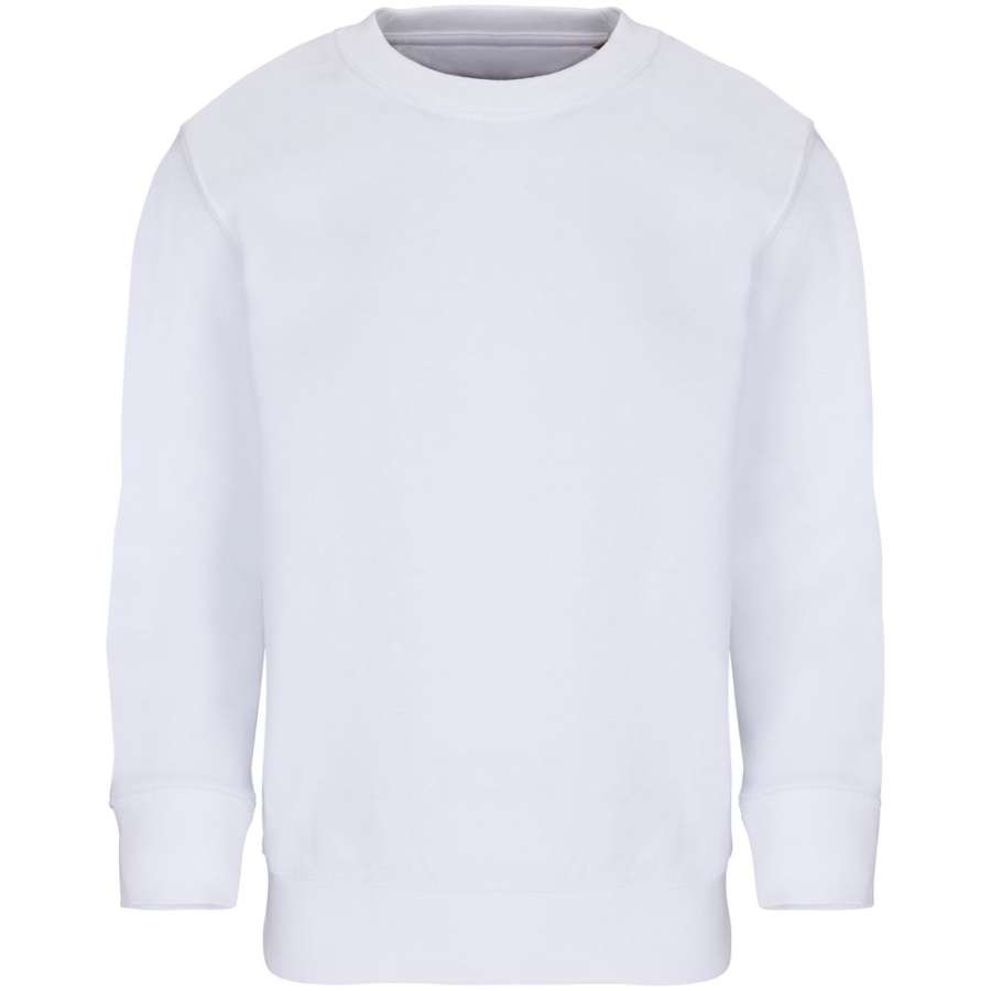 Детский свитшот из хлопка и переработанного полиэстера с круглым вырезом и втачным рукавом.