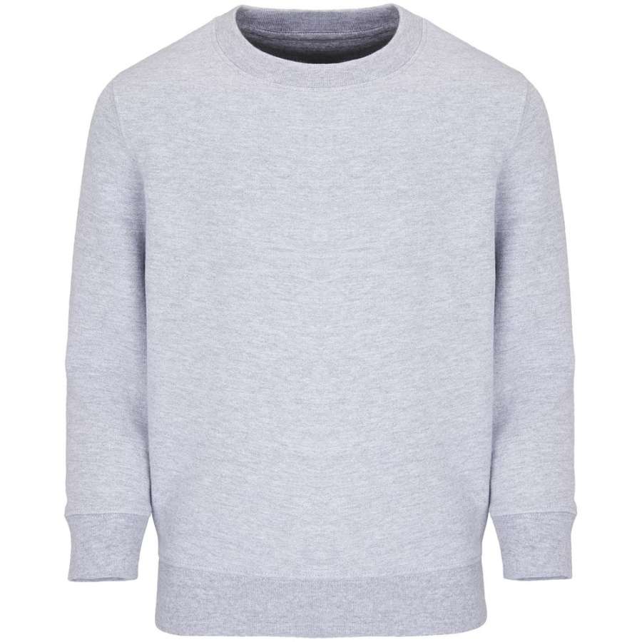 Детский свитшот из хлопка и переработанного полиэстера с круглым вырезом и втачным рукавом.
