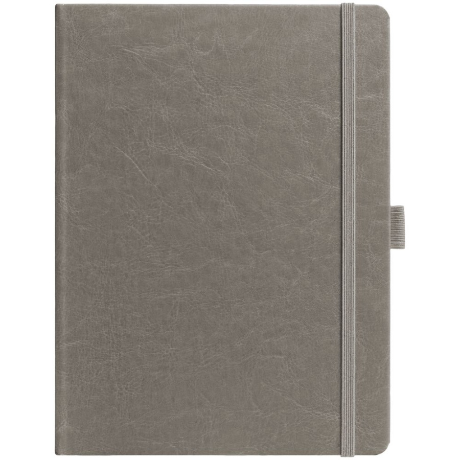 Еженедельник в твердой обложке выполнен из материала Vintage, серый СС, дополнен резинкой, петлей для ручки и ляссе серого цвета.
