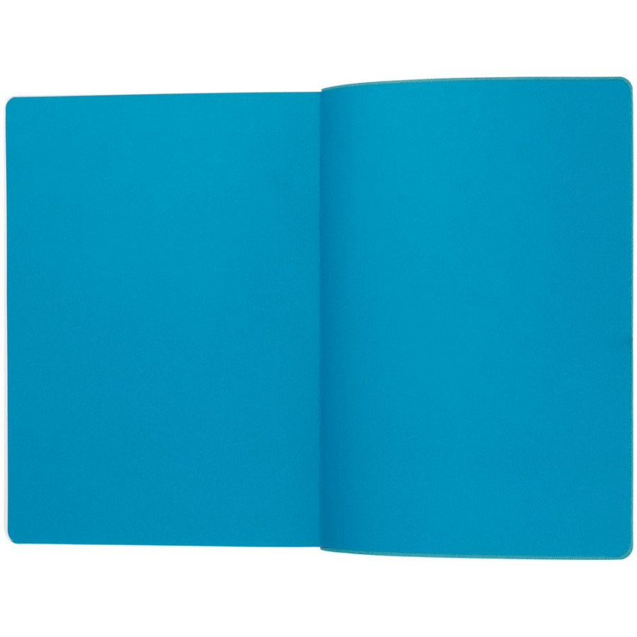 Гибкая обложка выполнена из материала Soft Touch, цвет морской волны II и Latte, цвет морской волны II (внутренняя часть обложки). Внутри корешка — специальное место для крепления ручки размером до 15х1 см.