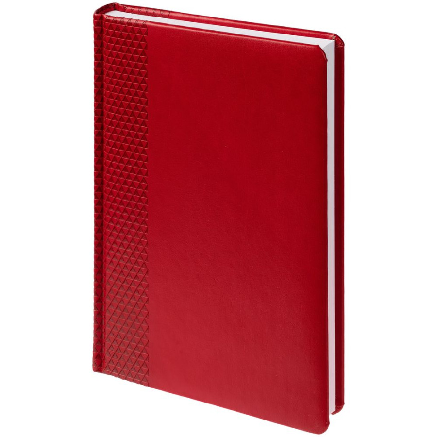 Ежедневник с твердой обложкой, выполнен из материала Waltz, красный PP, дополнен ляссе в цвет материала.