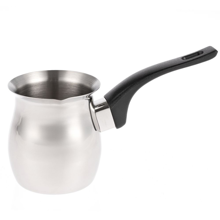 Турка из высококачественной нержавеющей стали не подвержена коррозии, не боится высоких температур и проста в уходе. Ручка турки выполнена из бакелита, благодаря чему не нагревается и не скользит в руке. Емкость 200 мл.