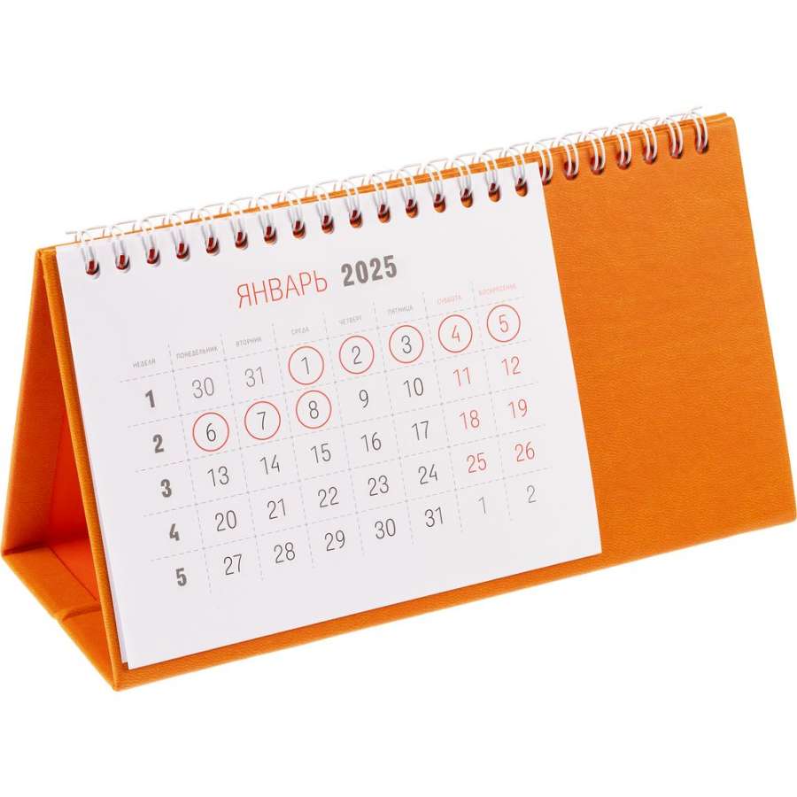 Настольный, перекидной календарь-домик выполнен из материала Latte, оранжевый ОО.
