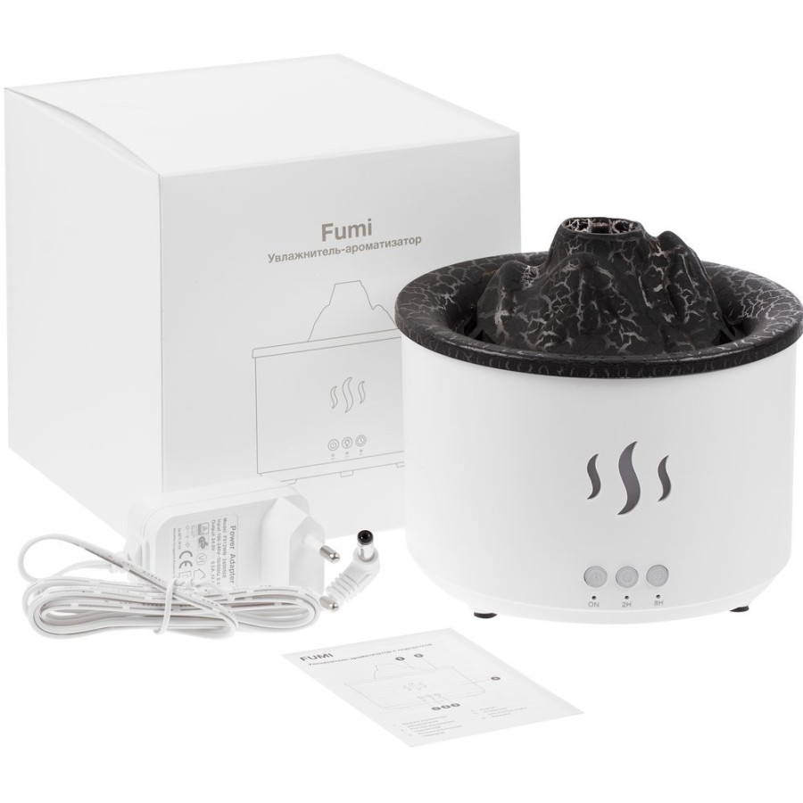 Отличительная черта модели Fumi — подсветка в виде разноцветного пламени. Благодаря оптическому эффекту влага вырывается из устройства, будто пар, поднимающийся над раскаленным жерлом вулкана.