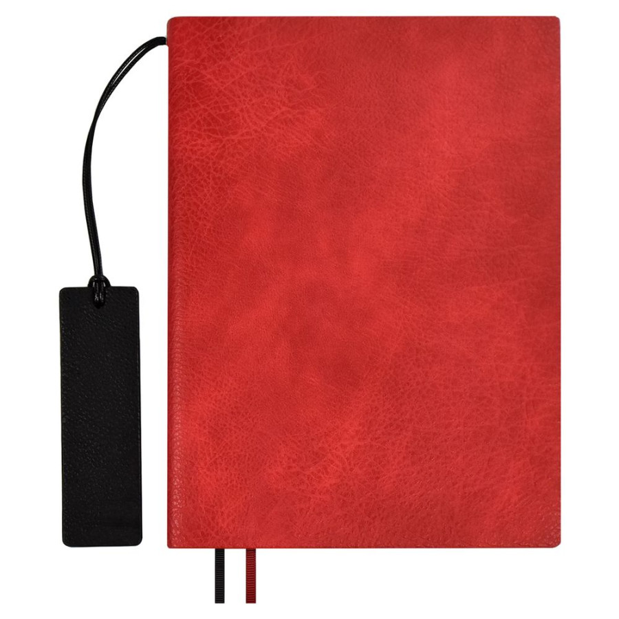 Ежедневник с гибкой обложкой и закладкой из искусственной кожи, дополнен капталом и двойным ляссе.