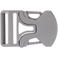 Особенность этой пряжки в том, что она состоит из 3 частей, две из которых крепятся напрямую на изделие, и для их установки необходим специальный инструмент. Третья деталь фиксируется на стропе.