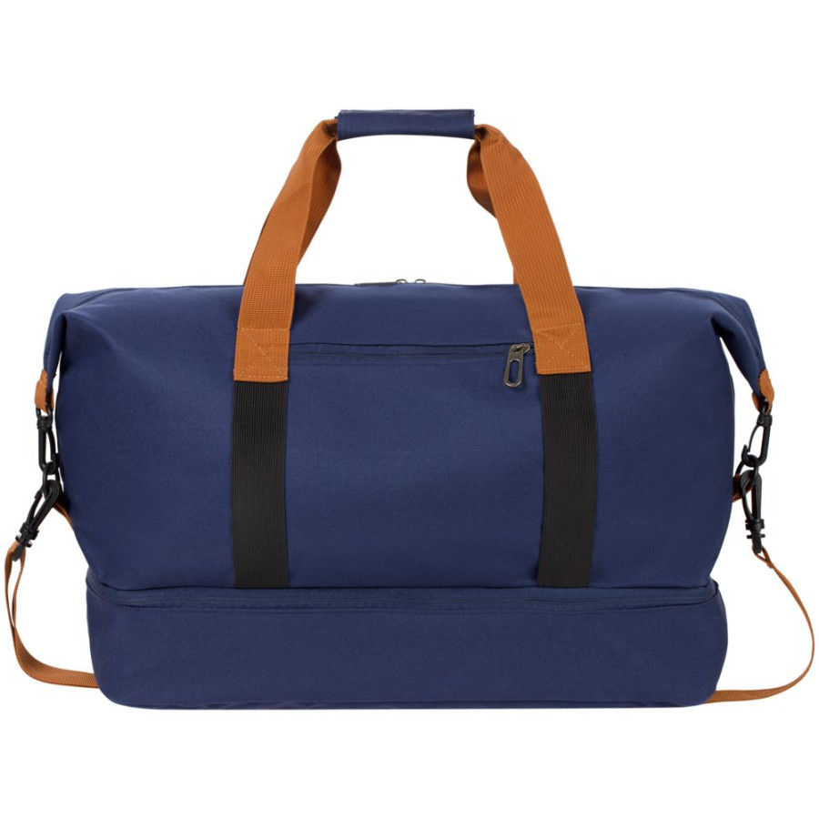 Дорожная сумка Incluso — надежный спутник в краткосрочной поездке, будь то командировка или выезд на уикенд. Также она с легкостью станет незаменима для спортзала. Изготовлена из прочного материала, оснащена удобными ручками и регулируемым плечевым ремнем, что обеспечивает комфорт при переноске. В сумке предусмотрено специальное отделение для обуви.