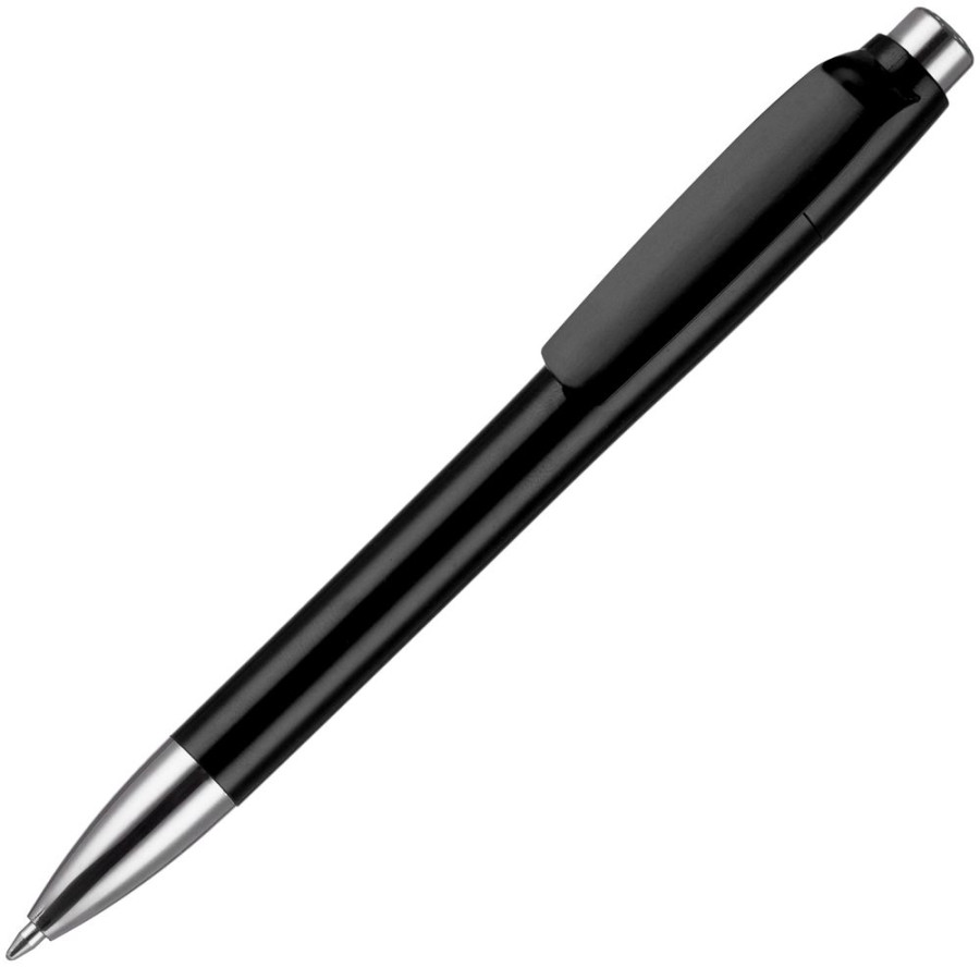 Пластиковая ручка с глянцевым корпусом и хромированными деталями. Большой клип идеален для нанесения логотипа компании.