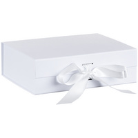 Коробка из переплетного картона, кашированного тонированной в массе крафтовой бумагой. Крышка на двух магнитах дополнительно фиксируется репсовой лентой. Толщина картона 2 мм.