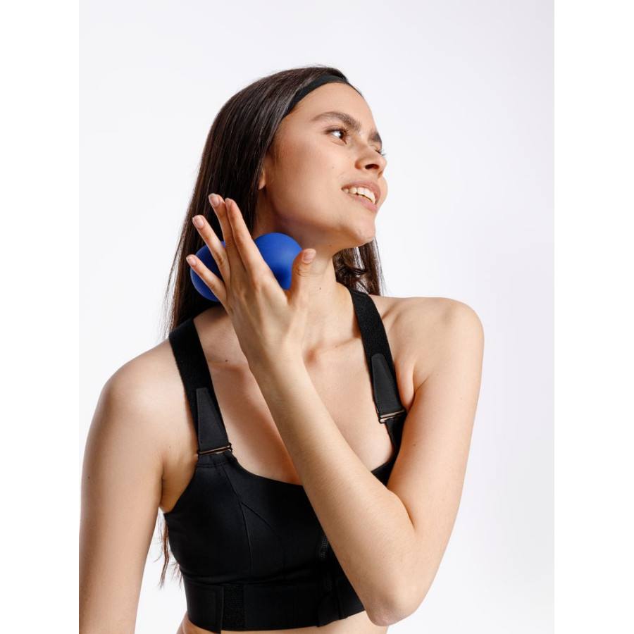 Двойной мячик воздействует на мышцы вдоль позвоночника и шеи, мягко выравнивает осанку. Специальная выемка между мячиками предусмотрена, чтобы обезопасить работу и не травмировать позвоночник во время упражнений.