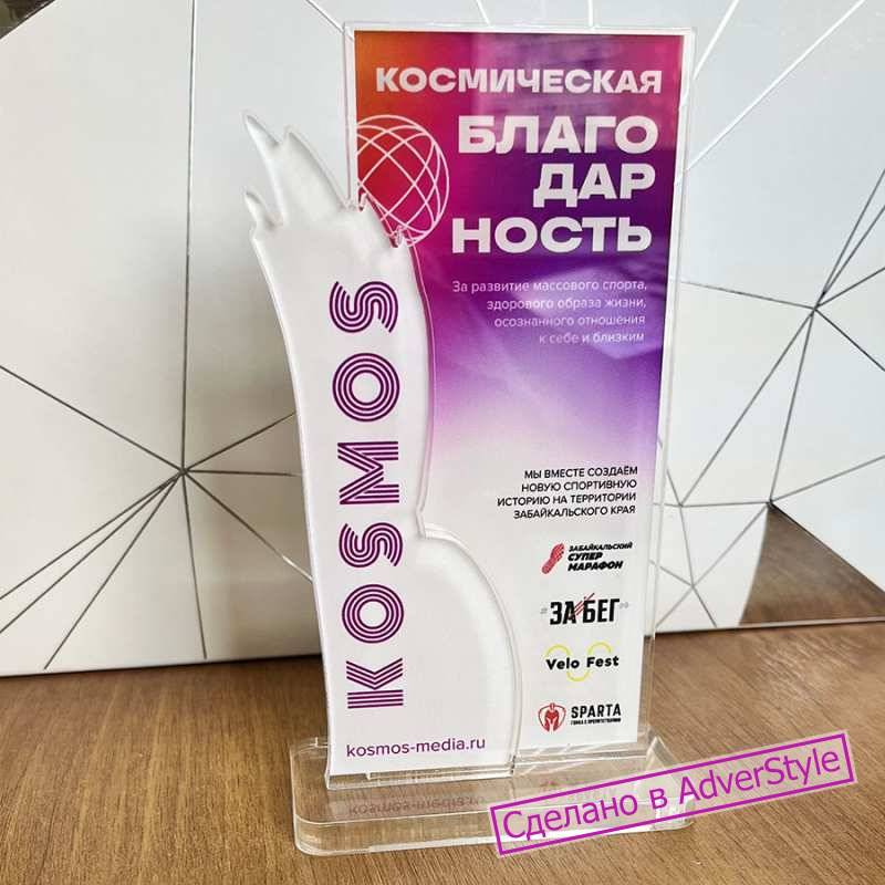 Награда изготовлена из стекла К9, в основе которого лежит оптическое боросиликатное стекло. Эту марку стекла отличает низкий процент посторонних включений, высокий показатель преломления и высокая прозрачность — идеальные качества для изготовления наград премиального уровня.