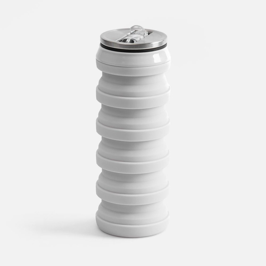 Складная бутылка для воды Folla привлекает внимание своим необычным внешним видом и функциональностью. По форме она больше всего напоминает классическую алюминиевую банку для напитков. При этом ее высоту можно легко увеличить с 10 до 20 см. В сложенном виде бутылка поместится даже в небольшую сумочку, а полный полезный объем составляет целых 480 мл.