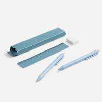 - В комплекте ручка, механический карандаш, линейка, ластик и упаковка.