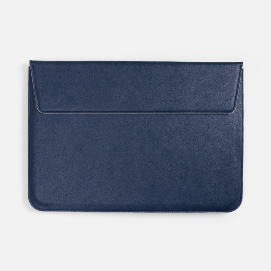 Чехол для ноутбука с диагональю до 15, 6 выполнен из материала Petrus, синего цвета, дополнен окрашенным срезом края серого цвета.