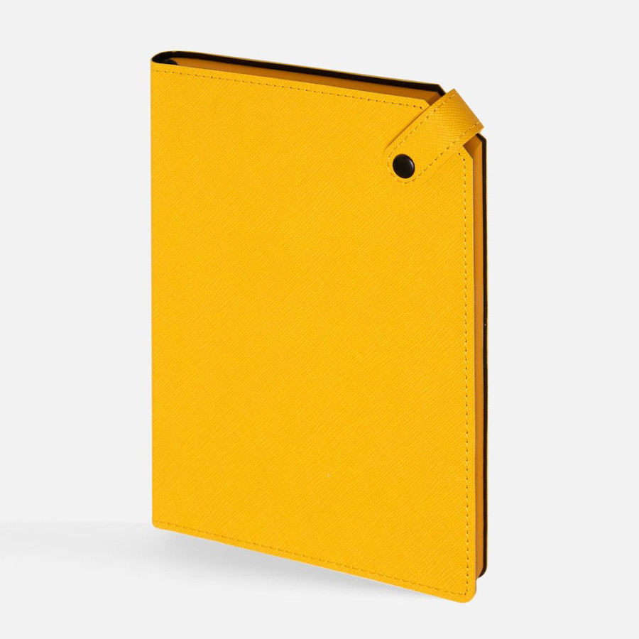 Ежедневник с гибкой обложкой, выполнен из материала Espresso, дополнен ляссе черного цвета и хлястиком на кнопке.