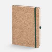Блокнот в твердой обложке из натуральной неокрашенной пробки, дополнен цветными петлей-резинкой для ручки, ляссе и резинкой на обложку.
