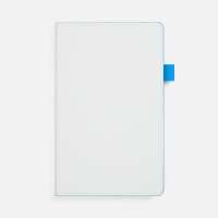 Гибкая обложка, материал обложки — Soft Touch, белый BB и Latte, голубойJJ; материал петли для ручки — Nice Touch, голубойJJ. Срез обложки окрашен в голубой цвет.