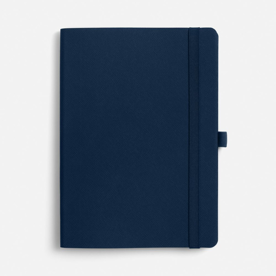 Ежедневник с гибкой обложкой, выполнен из материала Nice Touch, темно-синий ХХ, дополнен цветными ляссе и петлей-резинкой для ручки.