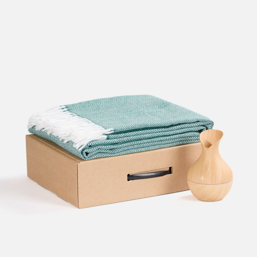 Мягкий плед нежных оттенков подарит тепло и комфорт, а изящный увлажнитель наполнит воздух свежестью и приятным ароматом. Этот набор — гармония красоты и функциональности, где каждый момент посвящен ценному отдыху и расслаблению.