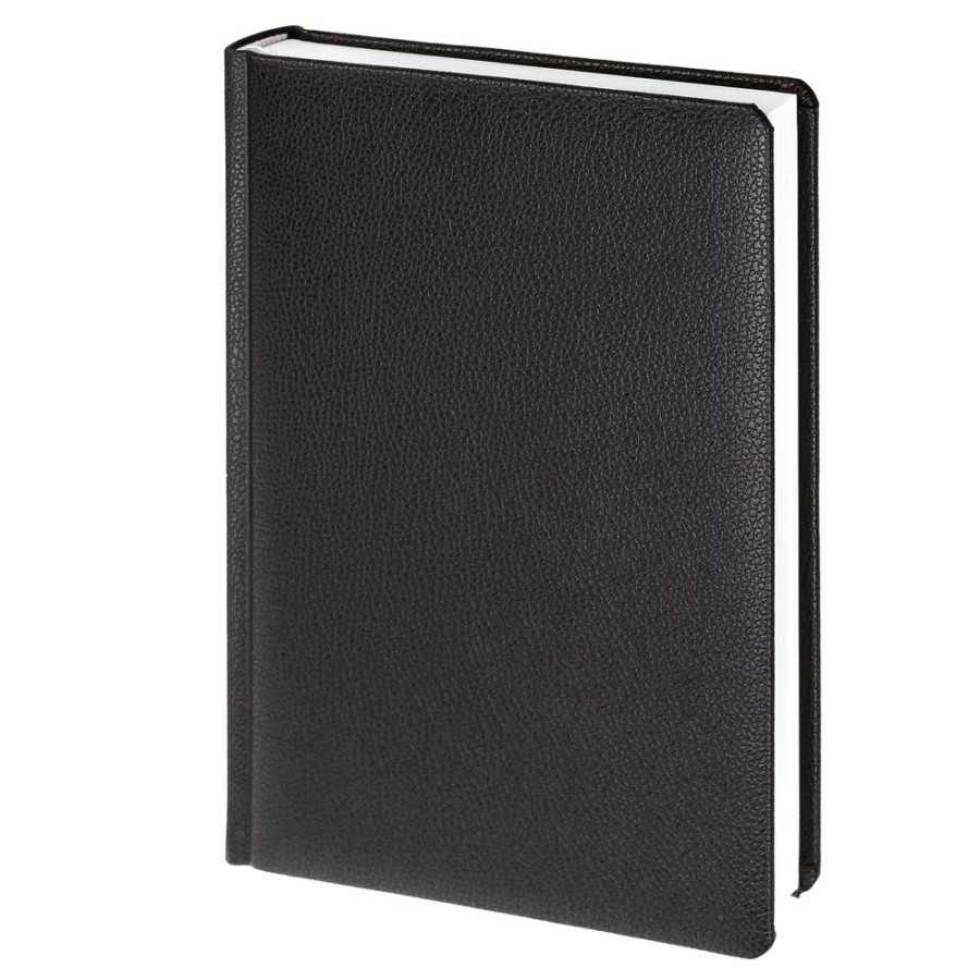 Ежедневник в твердой обложке c поролоном, выполнен из материала La Fite, черный АА, дополнен ляссе белого цвета.
