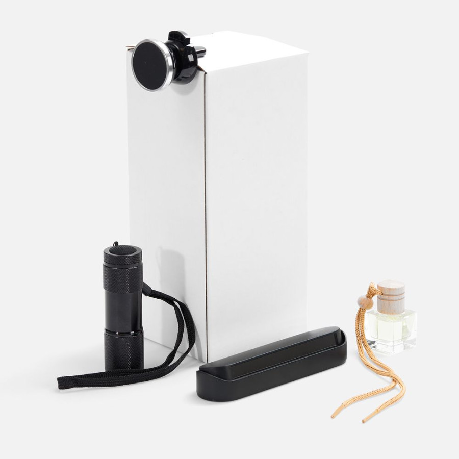 | Материал: | держатель - АБС-пластик; визитка - пластик; фонарик - алюминий; ароматизатор - стекло, дерево; коробка - микрогофрокартон |