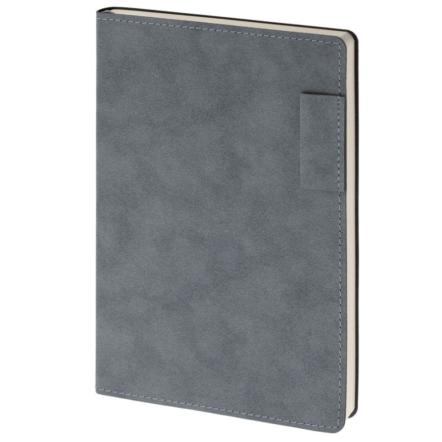 Ежедневник с гибкой обложкой, выполнен из материала Nubuck, темно-серый ЕЕ, дополнен петлей-лейблом для ручки и ляссе в цвет материала.