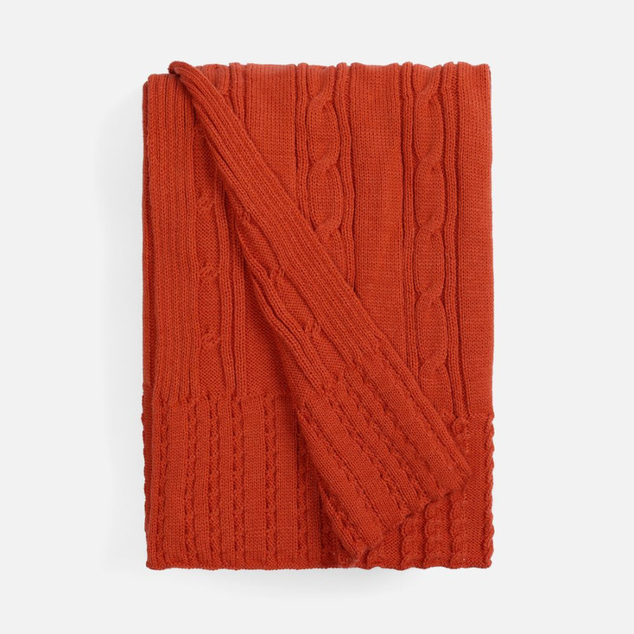 Тонкое переплетение вертикальных кос-жгутов создает благородный стиль, где простота линий встречается с изысканной рельефной текстурой. Плед из мягкого акрила сохраняет тепло, оставаясь удивительно легким и воздушным.